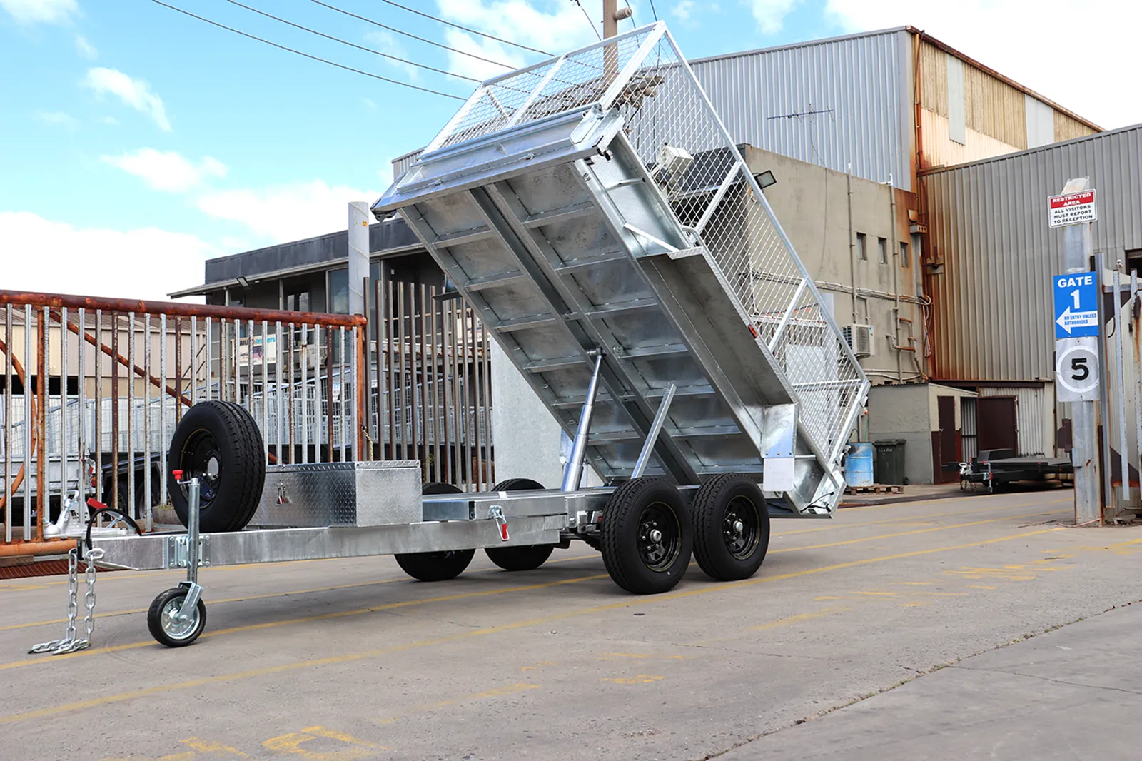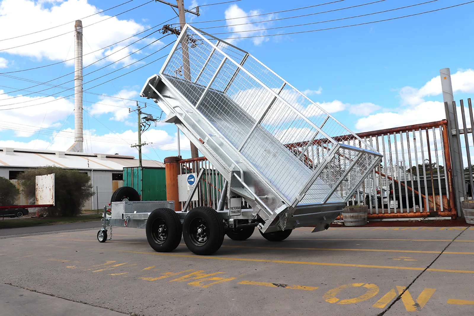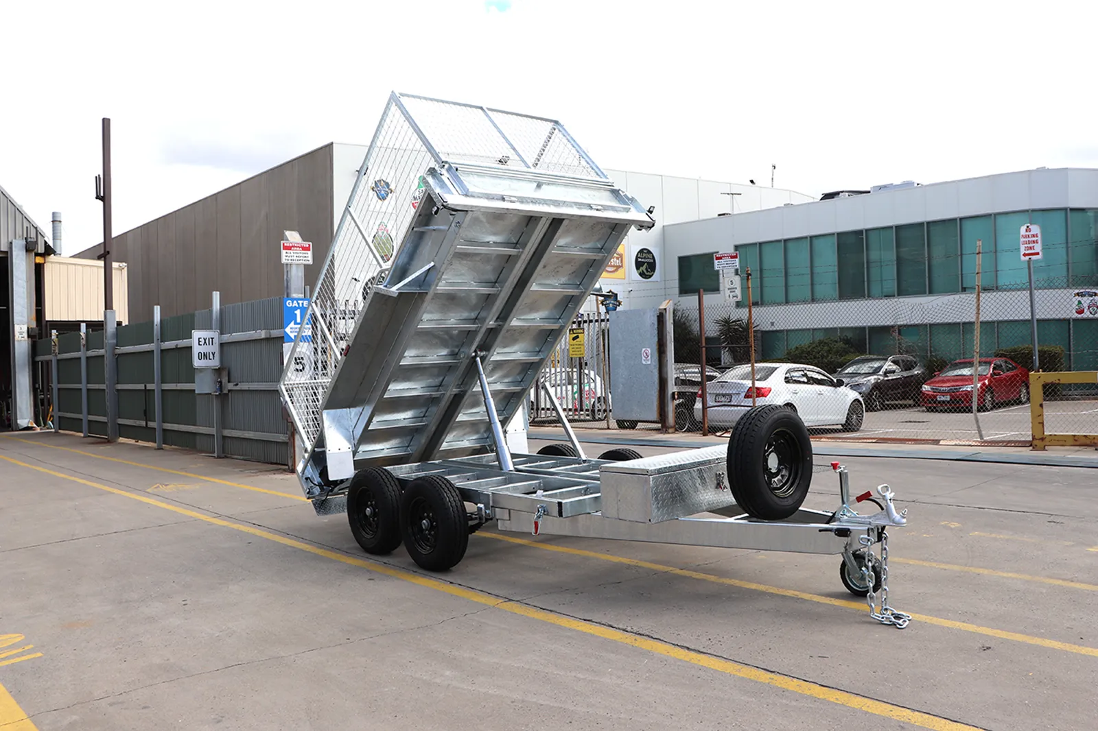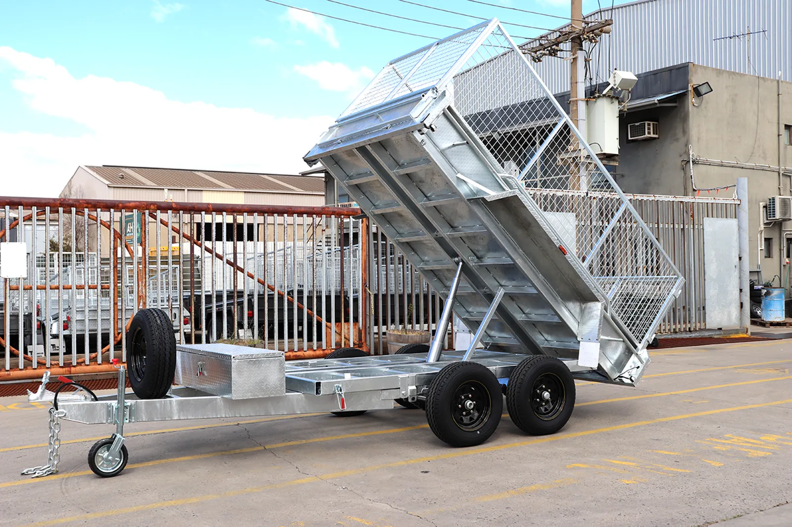 Galvanised Hydraulic Tipper Trailers, Promotion, Shop - Trailers for Sale Melbourne, Trailers with Light Truck Tyres for Sale, Victoria10×5 Heavy Duty Galvanised Hydraulic Tipper Cage Trailer for Sale | 3ft Cage