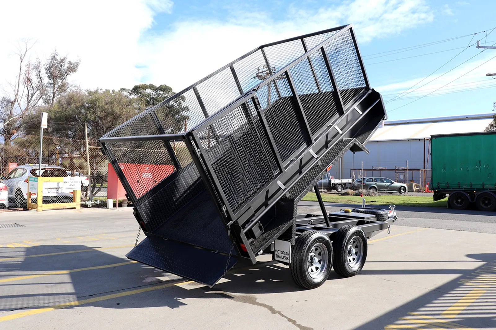 [vc_row][vc_column][vc_column_text css=””]10×5 Heavy Duty Hydraulic Tipper Trailer with 3ft (900mm) Heavy Duty Australian Made Cage | 3200 KG ATM – Melbourne Victoria. Trailer & Trailers has a range of Hydraulic Tipper Trailers for Sale in Victoria’s Largest Trailer Warehouse in Thomastown.[/vc_column_text][/vc_column][/vc_row]