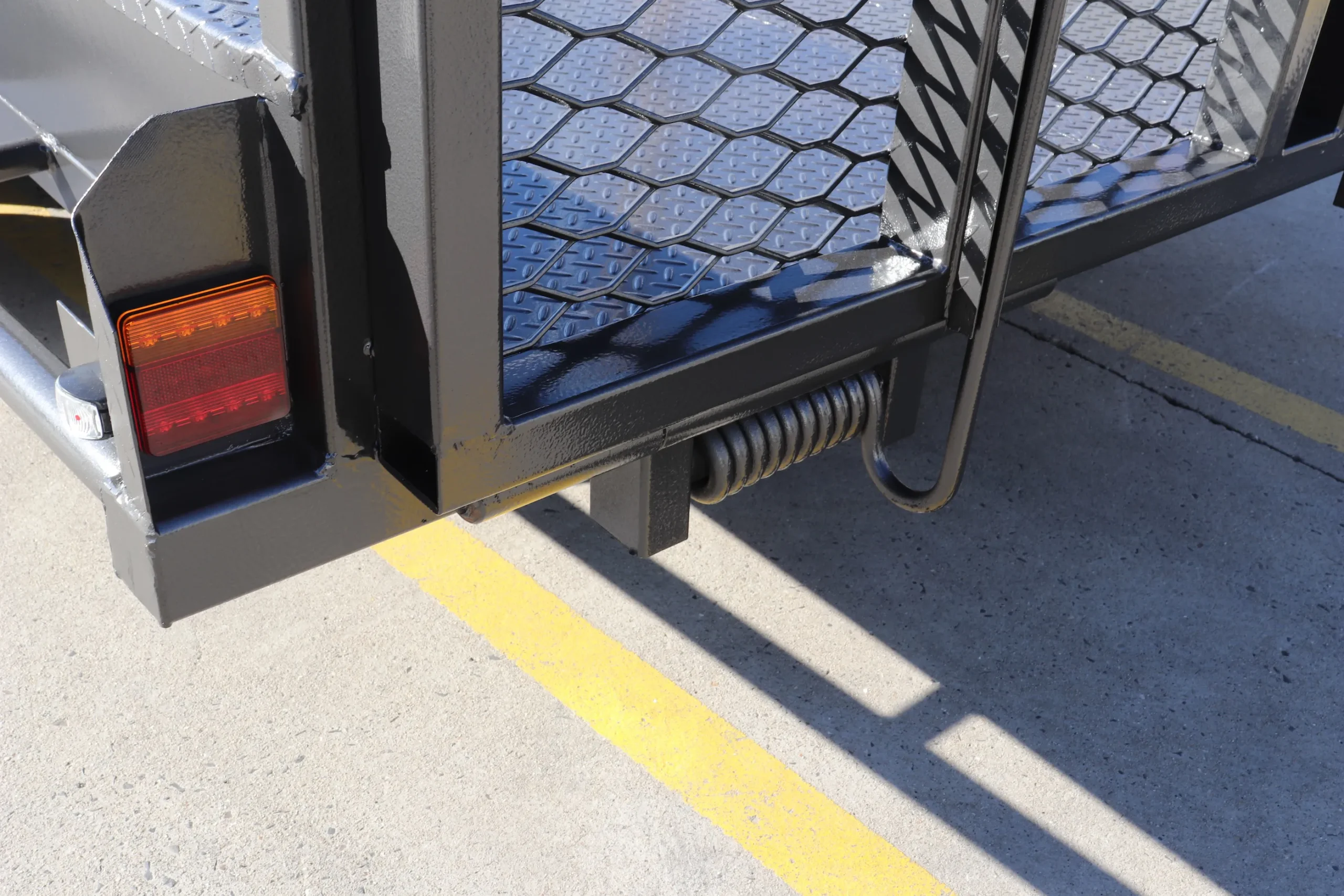 16×6’6″ Car Carrier Box Trailer for Sale with 10″ Sides – Rear Drop Spring Assist Mesh Ramp