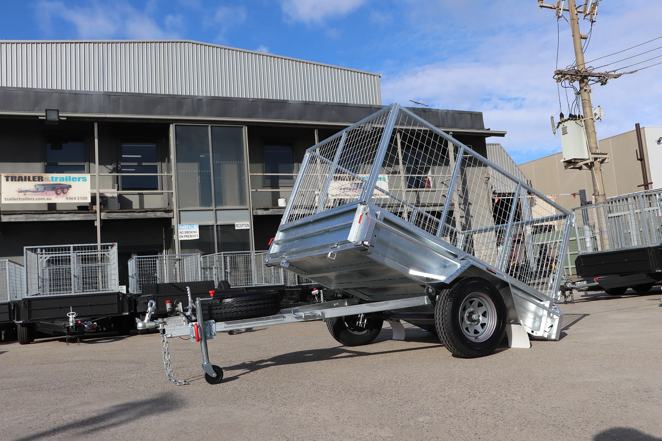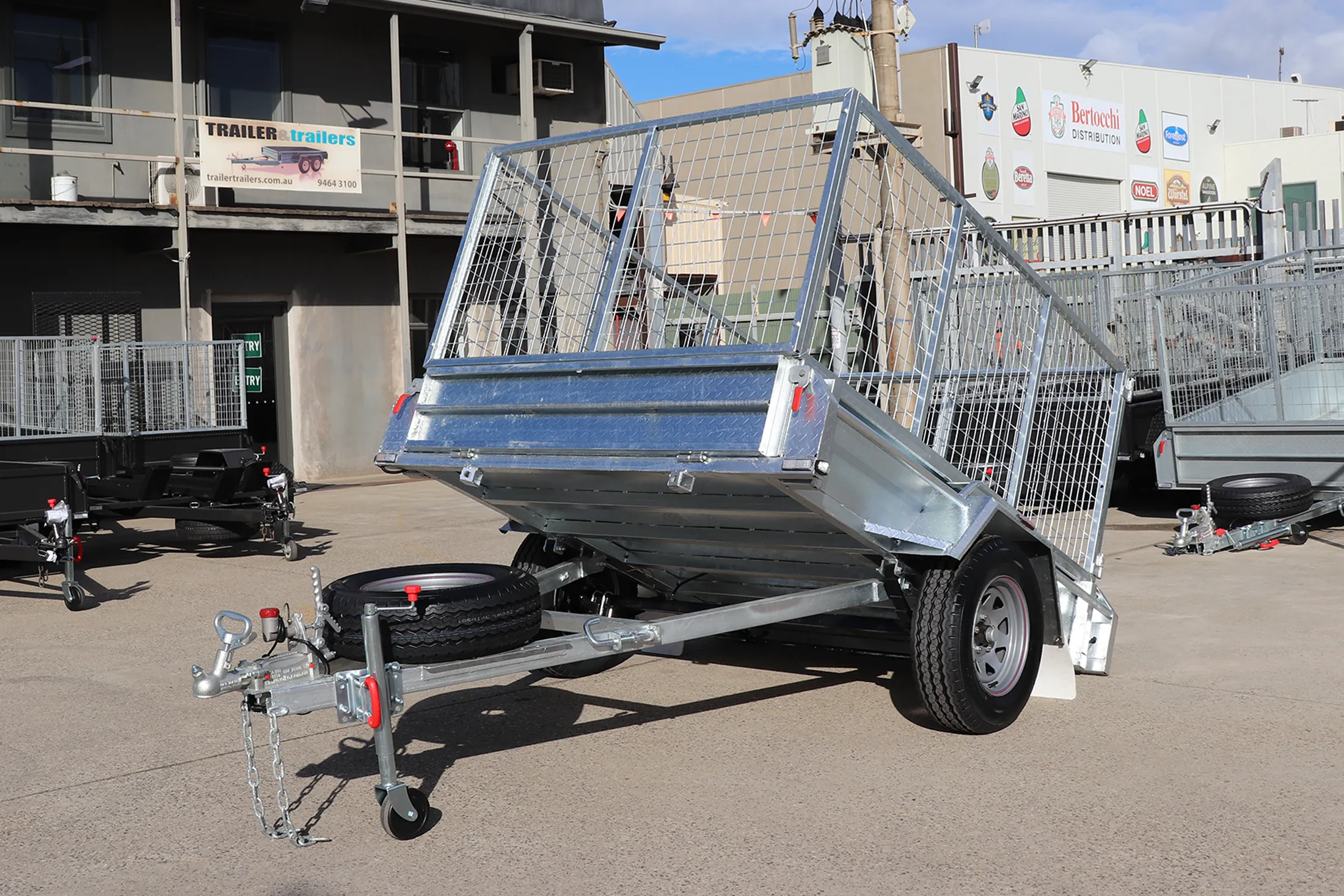 7x5 Galvansied Cage Trailers, Promotion, Shop - Trailers for Sale Melbourne, Single Axle Galvanised Cage Trailers for Sale, Single Axle Galvanised Trailers for Sale Melbourne, Victoria7×5 Galvanised Single Axle Braked Cage Trailer for Sale – 3 Ft Cage Manual Tipper