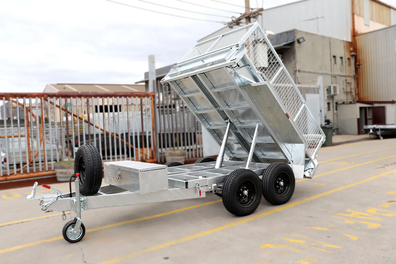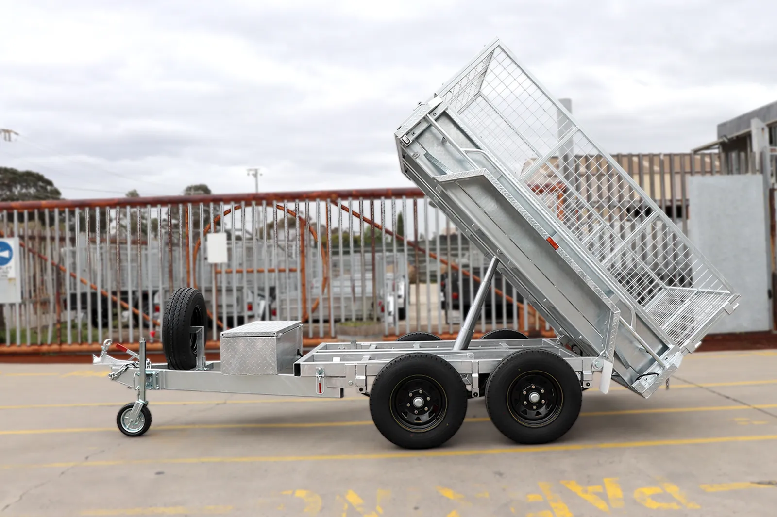 Galvanised Hydraulic Tipper Trailers, Promotion, Shop - Trailers for Sale Melbourne, Trailers with Light Truck Tyres for Sale, Victoria8×5 Heavy Duty Galvanised Hydraulic Tipper Cage Trailer for Sale | 2ft Cage