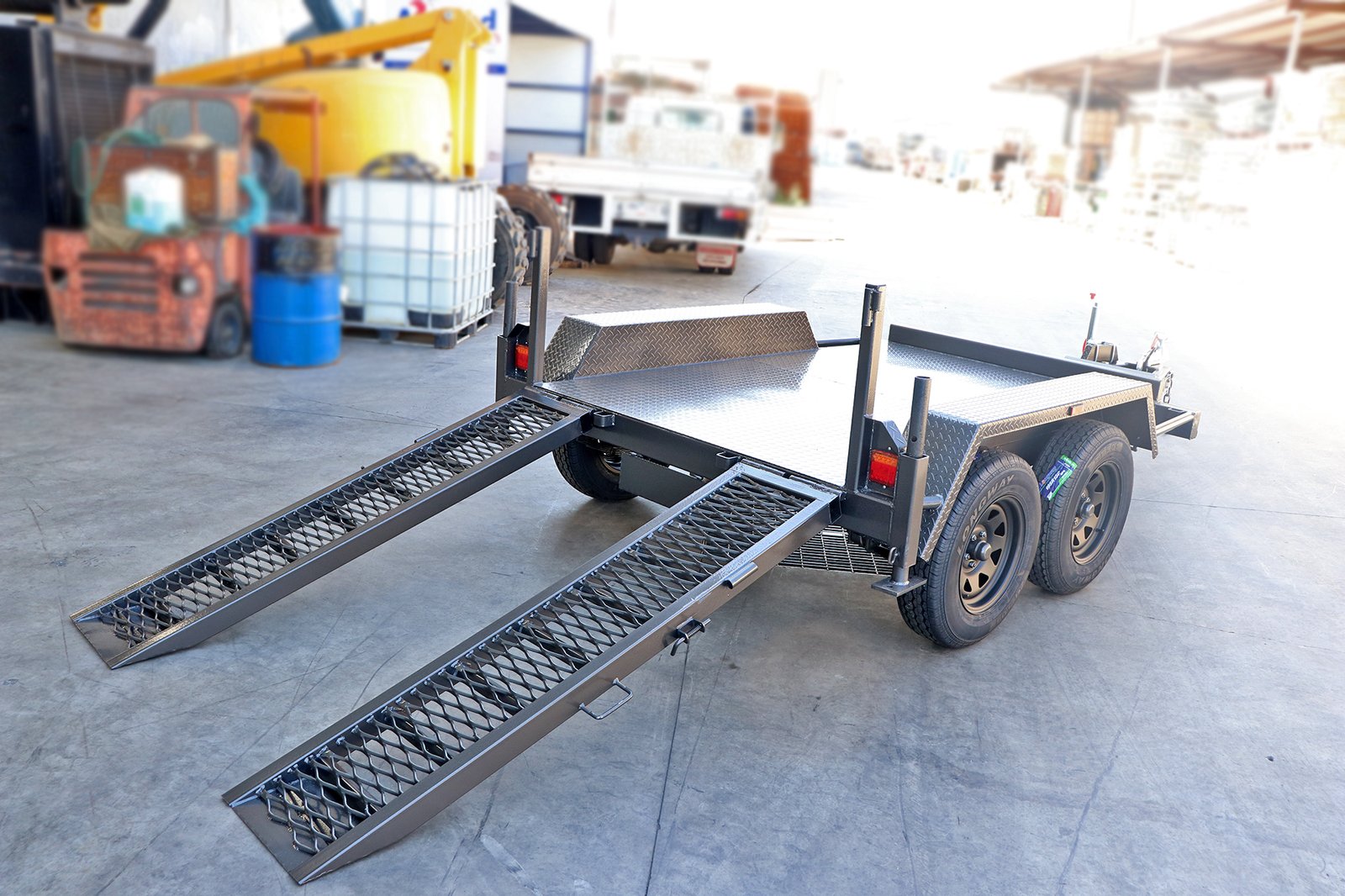 8×5 Tandem Plant Trailer Heavy Duty -2x Drop Down Plant Ramp for Sale – Thomastown, Melbourne – Victoria. Trailer & Trailers has range of Plant / Machinery Trailers for Sale in Victoria’s Largest Trailer Warehouse in Thomastown.