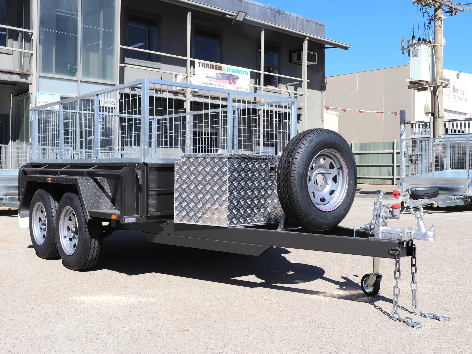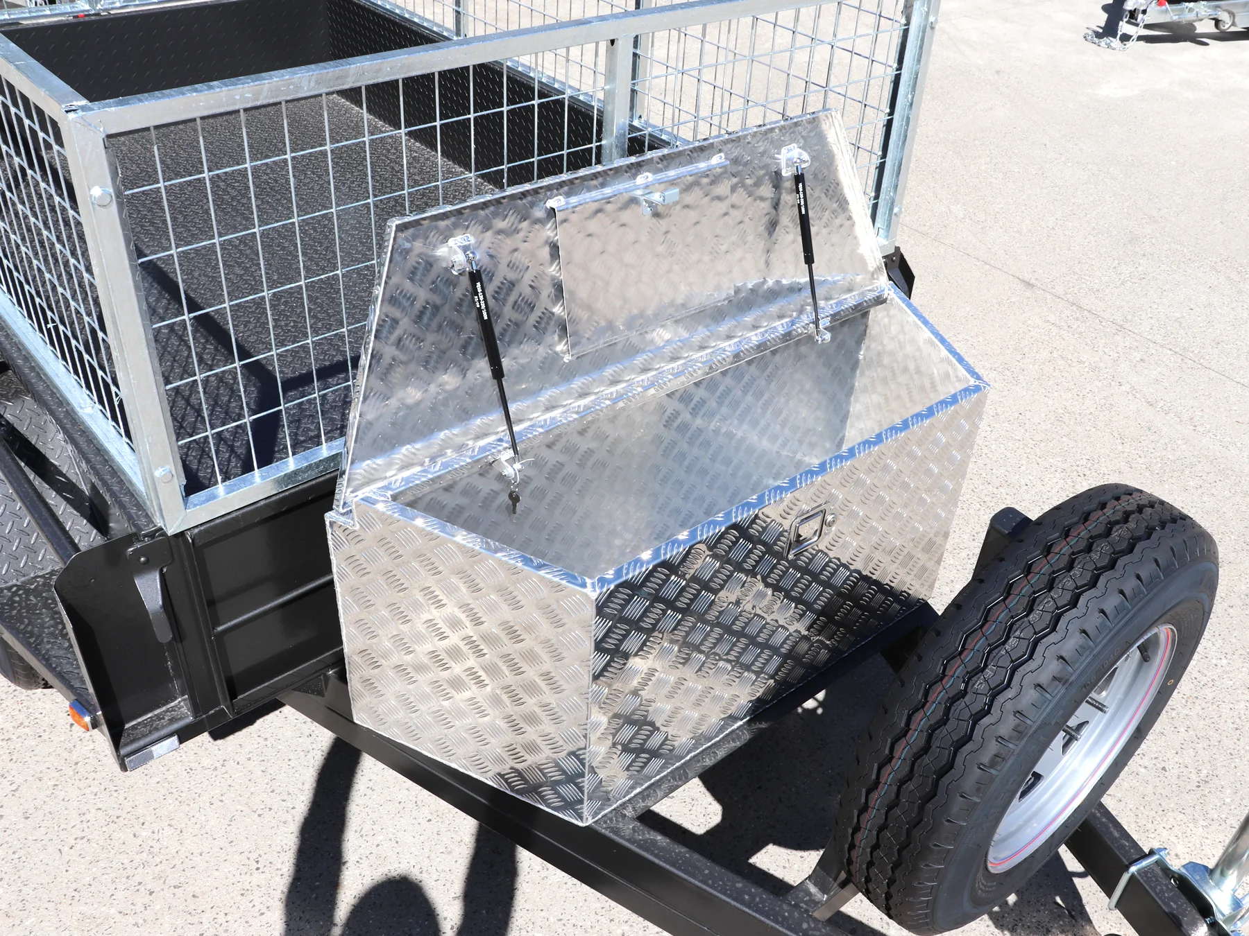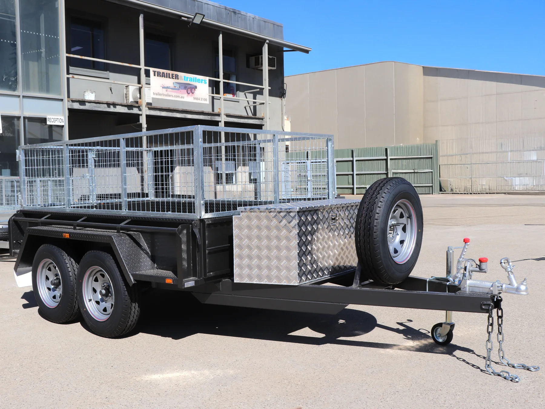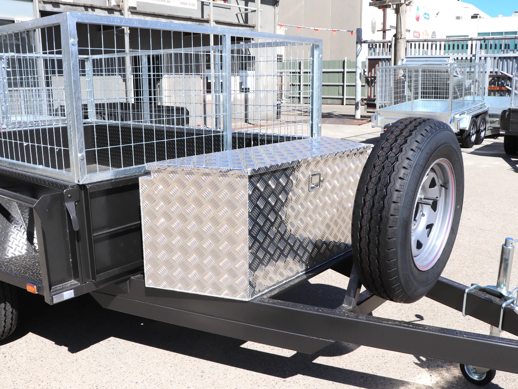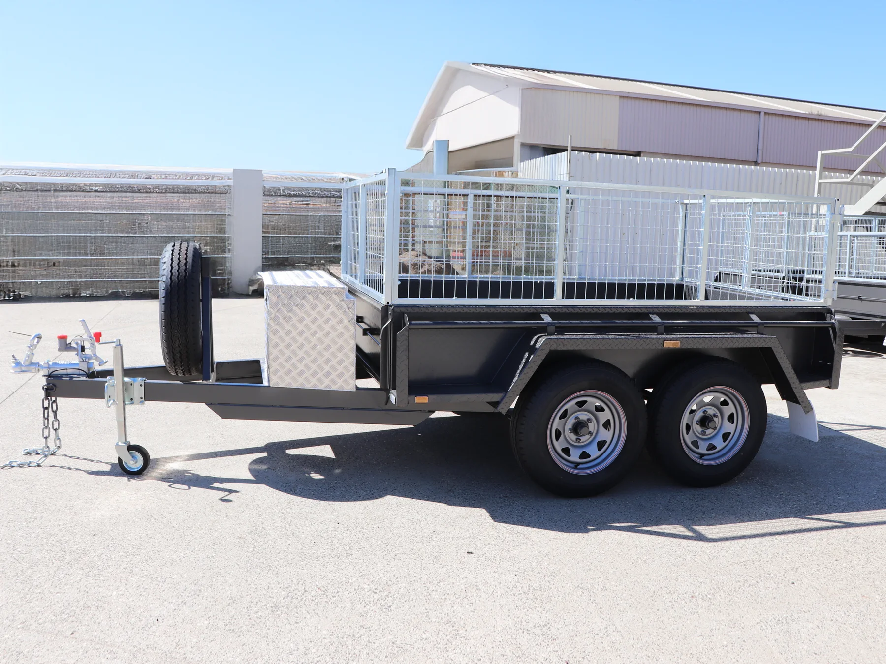 8×5 Heavy Duty Tandem Cage Trailer | 2 Ft Cage | Toolbox on Drawbar | Upright Spare Mount