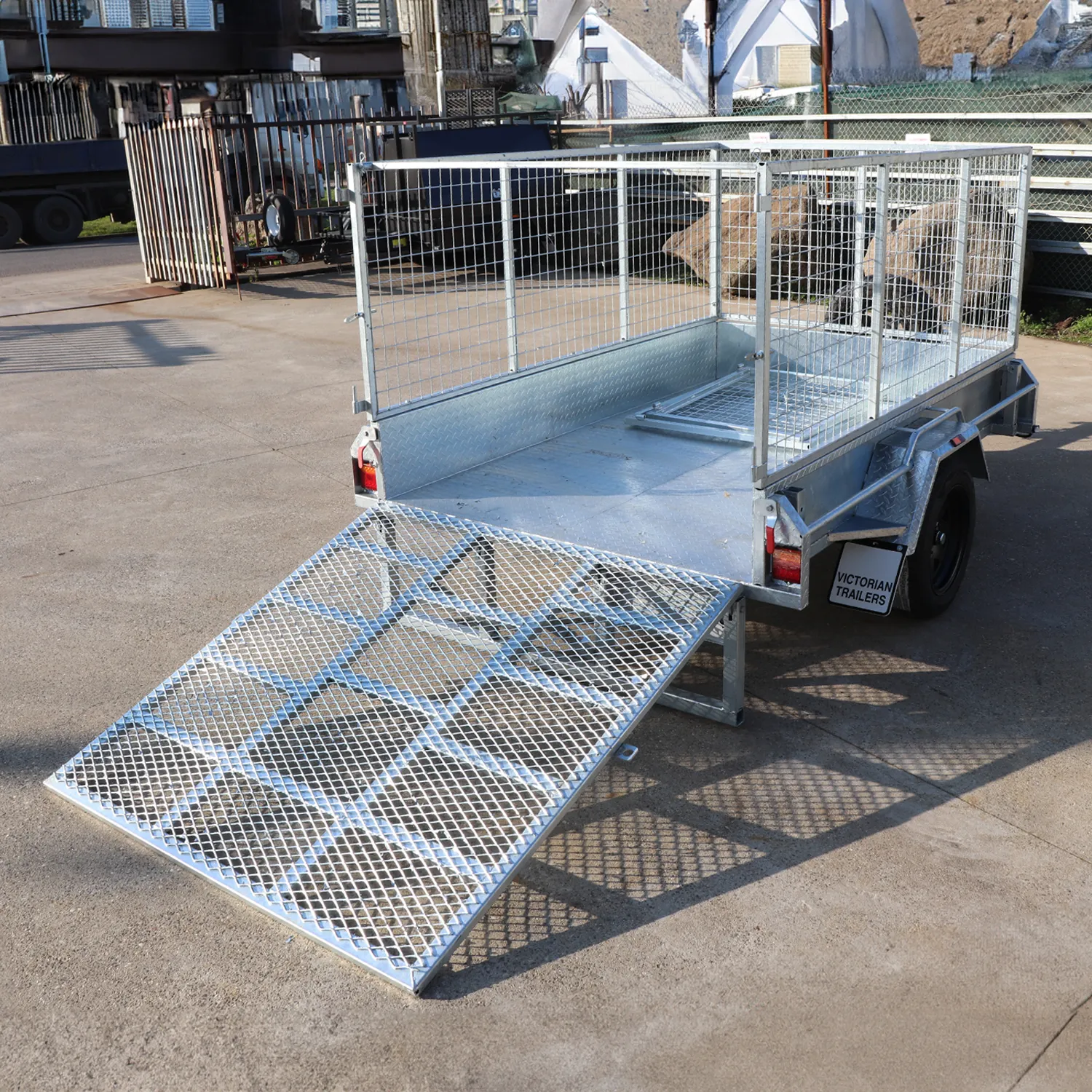 Need a reliable and versatile trailer in Melbourne? Our 8×5 Single Axle Galvanised Trailer with a 3ft Cage and 5ft Rear Drop-Down Ramp is your ideal solution. This sturdy trailer features a spacious 8×5-foot deck, perfect for carrying various loads, whether for work or leisure.