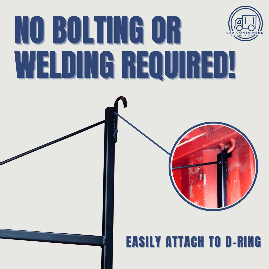 This rack makes the most of the space on top of your shipping container. Unlike floor brackets, it leaves the bottom area open and clean for easier use.